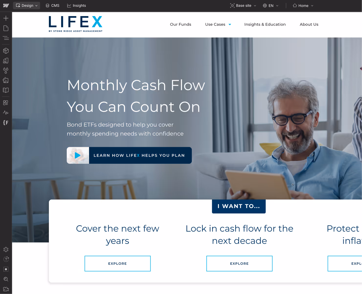 We also took advantage of Webflow Enterprise features like page branching, enabling LifeX to stage updates, collaborate with regulators, and roll back changes with ease. This functionality supports the kind of rigorous review process required by US financial laws.