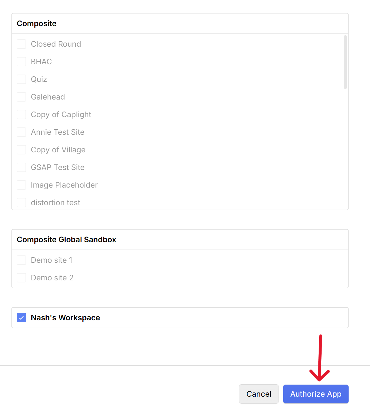 Select the workspace or the specific site(s) you want to connect. (Microsoft notes you can add it to a whole workspace or a single site and they recommend not choosing more than about 5 sites at once.)