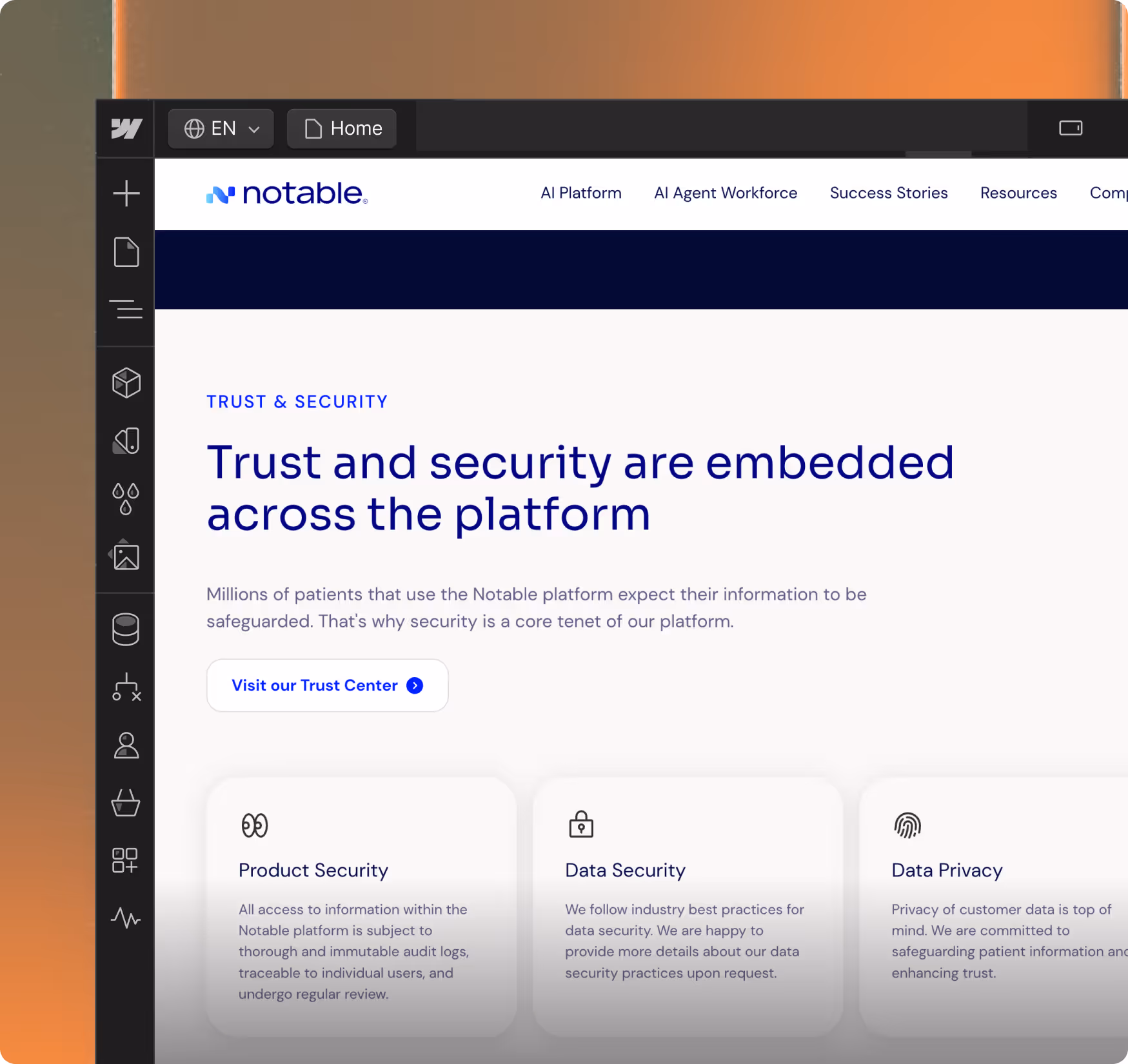 The modern, no-code website development platform combining the flexibility of custom code with the speed of visual design.